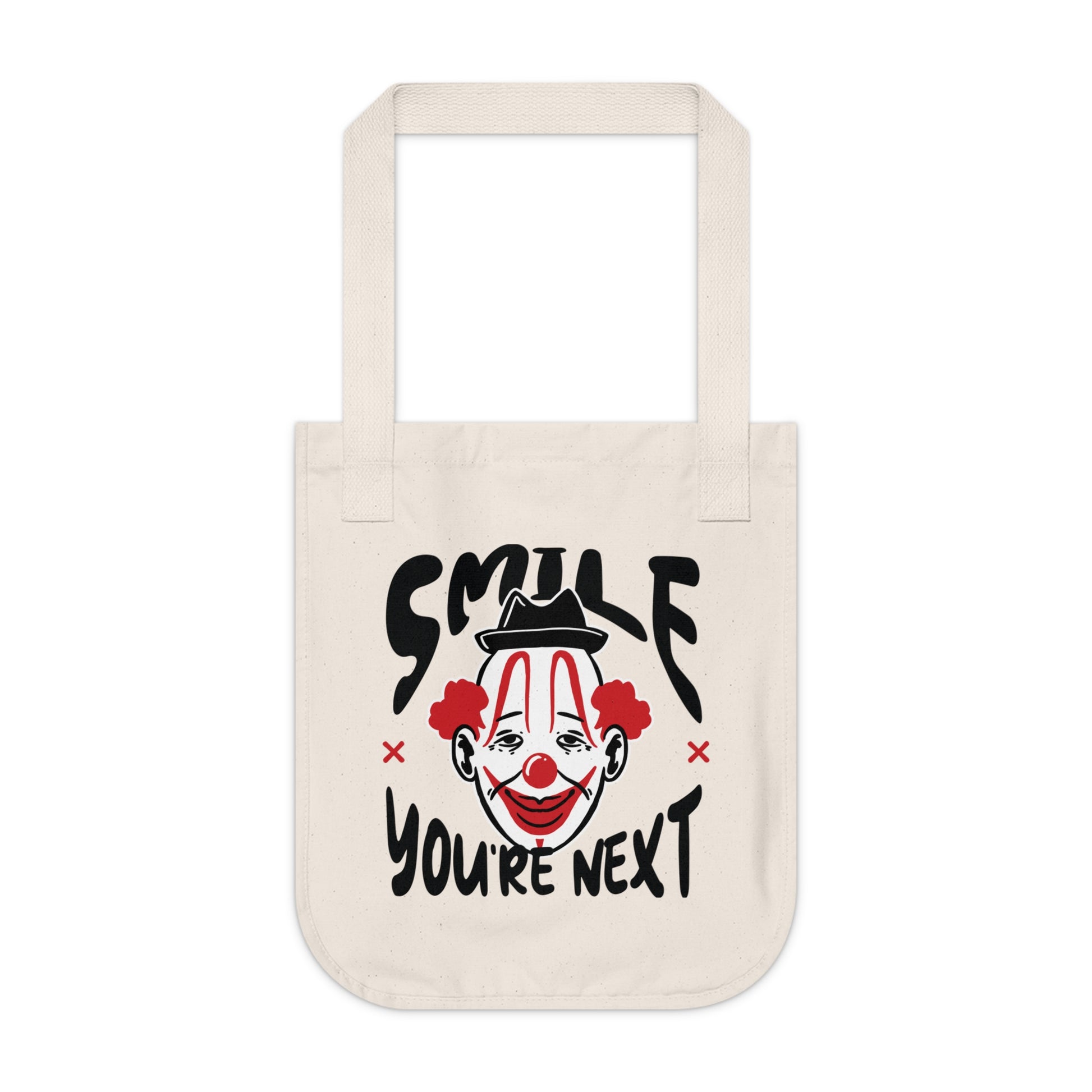 A killer clown tote bag, perfect for halloween or just for every day exuding that clown energy that we all have. Clown on the front, and a little surprise on the back!🤡